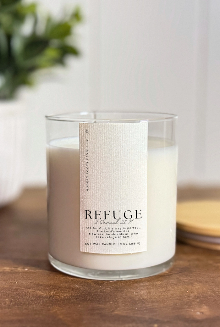 The story behind this fragrance is the timeless tale of Jesus calming the storm and the wisdom of 2 Samuel 22:31. As the ozone accord and sea salt dances with the essence of citrus, violet, powder, and light musk, this exquisite candle captures the essence of serenity reminding us of the calmness and refuge Jesus provides during life’s storms.