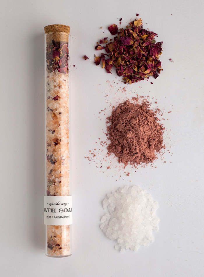 Ingredients: purified sea salt, kaolin clay, rosa canina (red rose petals), phthalate-free fragrance, rosa damascena (rose) essential oil